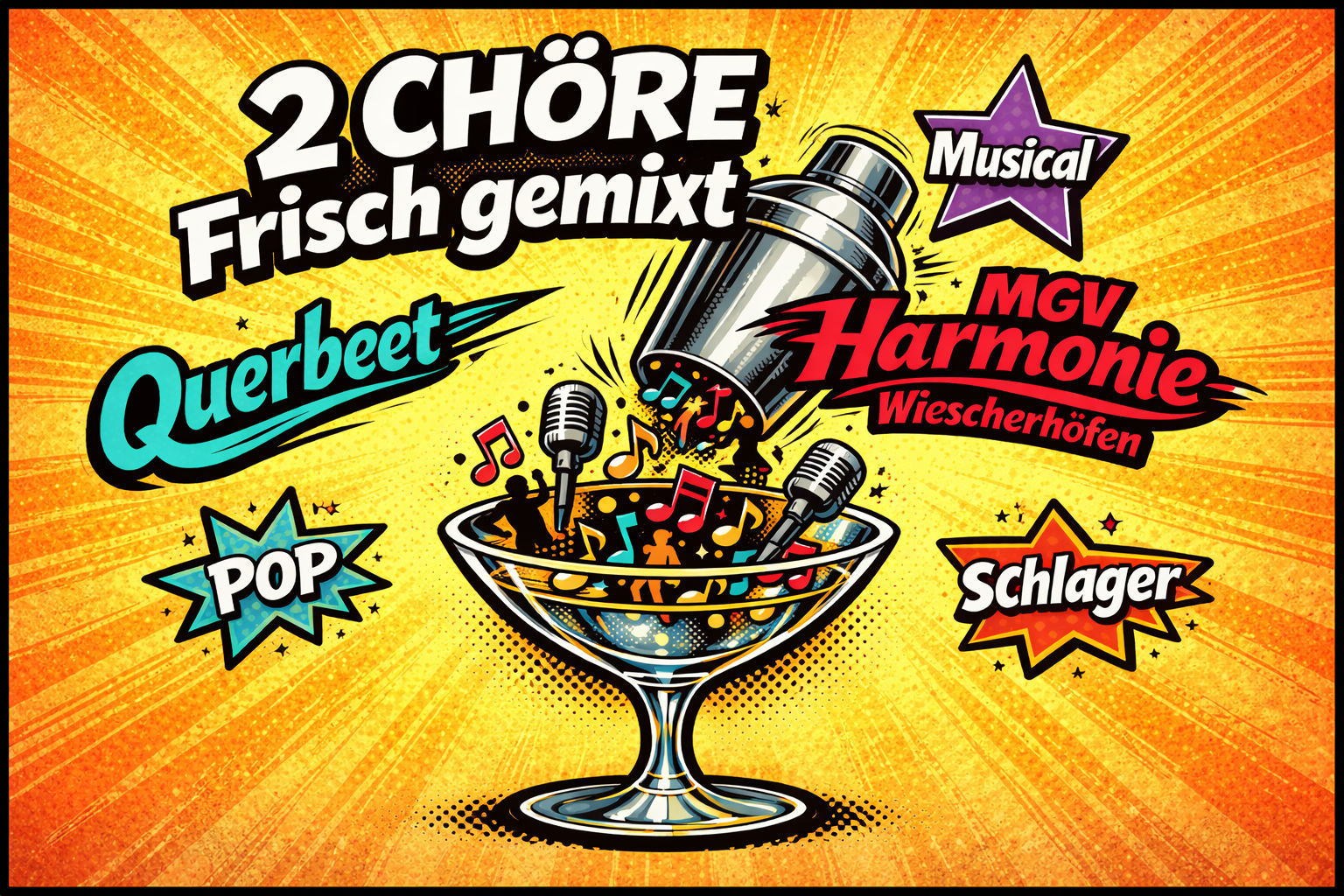 2 Chöre – Frisch gemixt! Highlights aus Pop, Musical und Schlager in einer Form, wie Sie Chormusik bisher nicht erlebt haben.